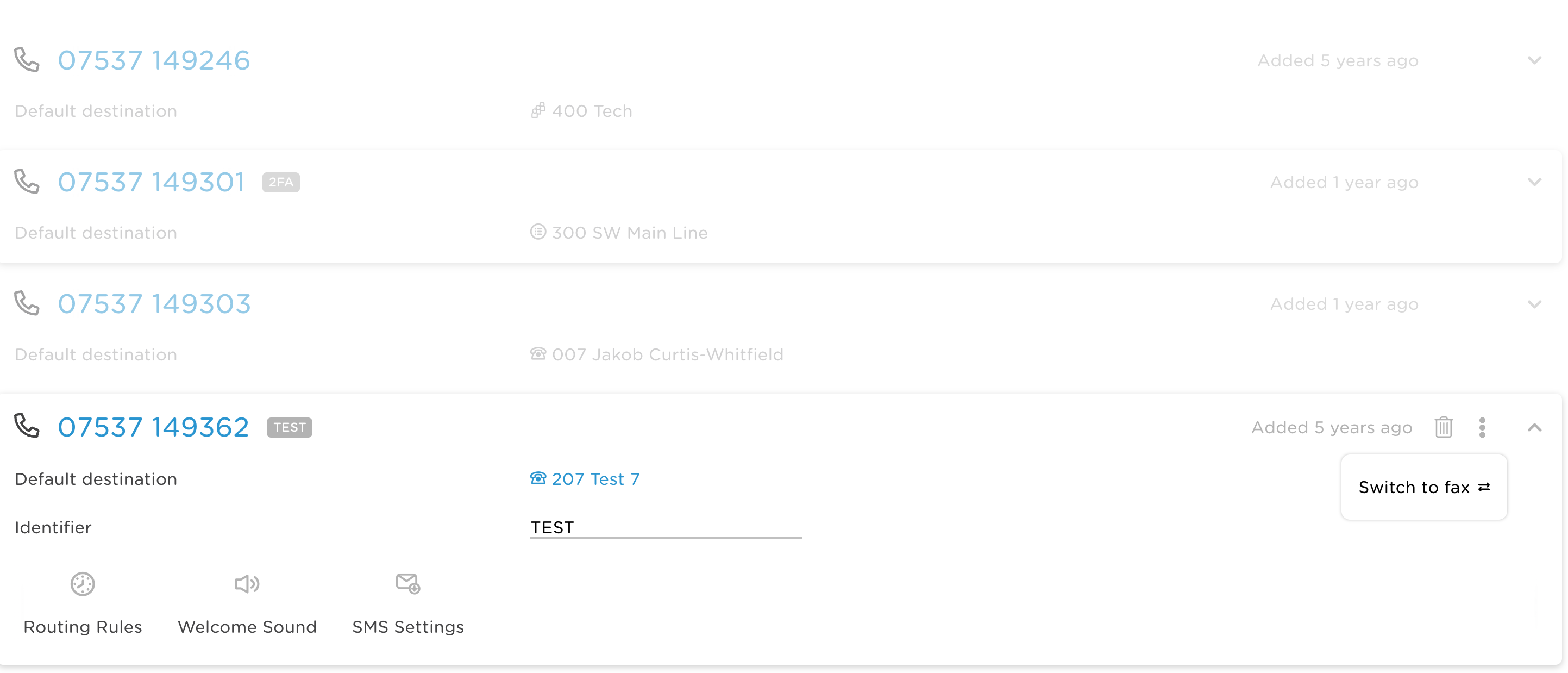 From the portal, click Incoming Numbers, then click the number you want to activate. The number you select is highlighted with a grey outline.